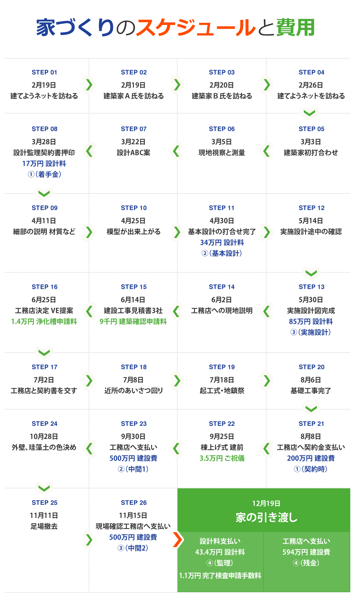 建てようネットに来場されてから建築家選び、そして、決定。その後の家づくりまでを実際に建てようネットで家を建てた施主さんの「家づくりメモ」をもとに再編集しました。これから建築家と家づくりを開始する方には大変参考になるはずです。