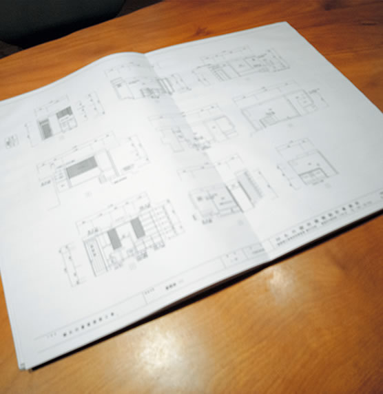 計画案の修正・打ち合わせを6回ほど行った後、材質など細やかな説明を受ける。キッチンや風呂の設計図も確認。庭の植物のことも話題になる。